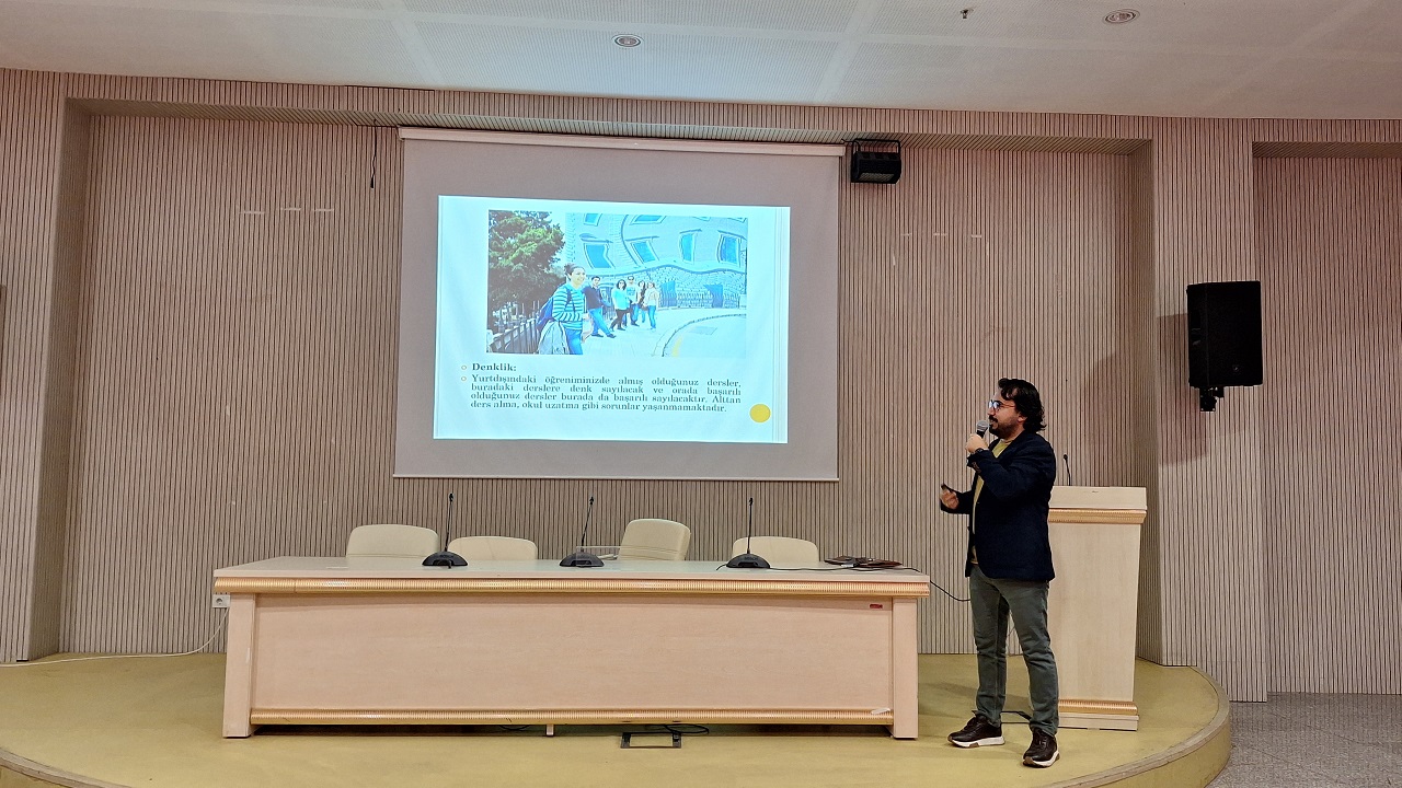 21 Ekim 2025 Salı günü saat 10.00’da gerçekleştirilen etkinlikte, Erasmus+ Kurum Koordinatörü Dr. Öğr. Gör. Müslüm EFLATUN tarafından kapsamlı bir sunum yapıldı.
