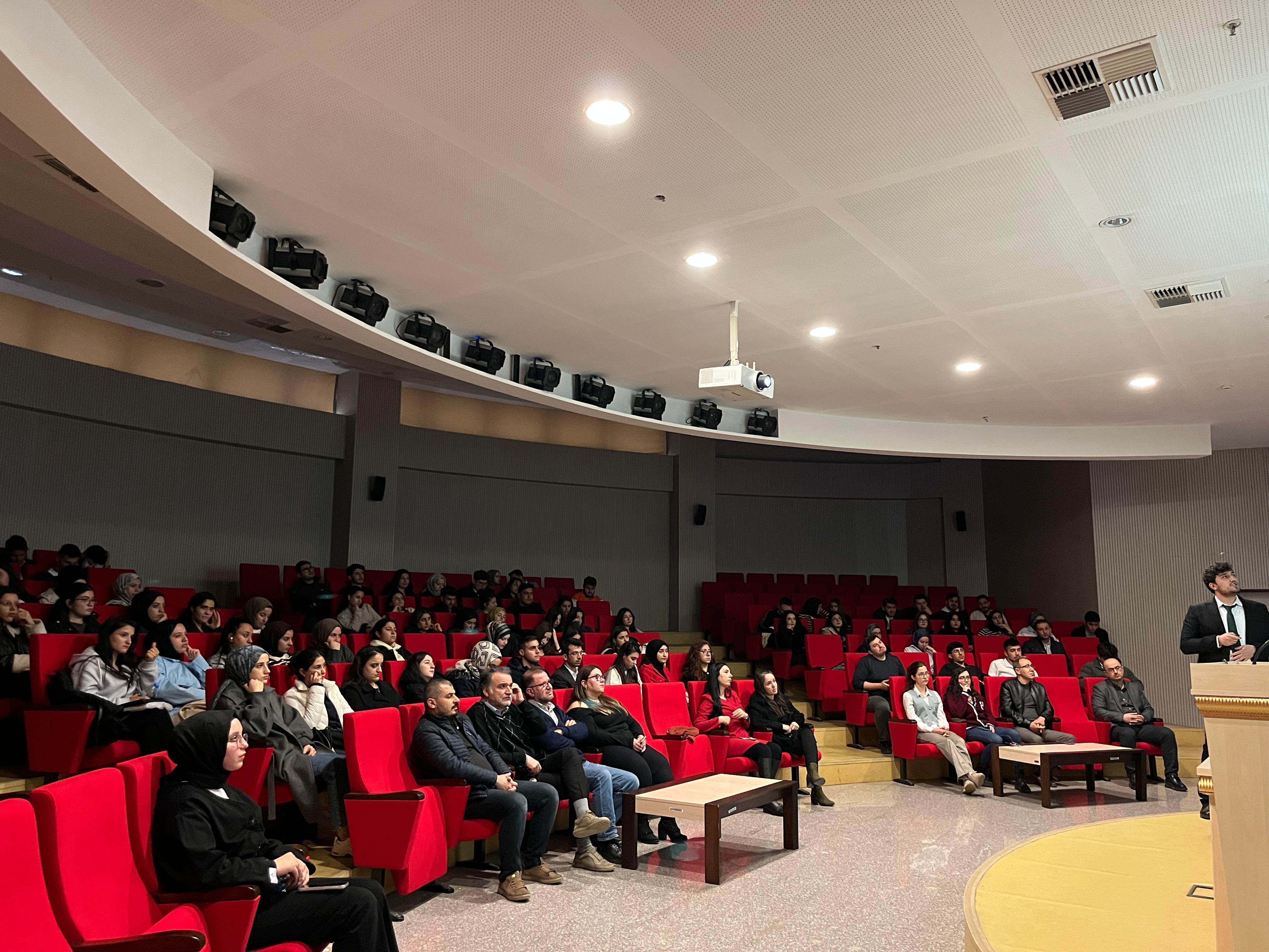 Matematiğin önemli ve güncel araştırma alanlarından biri olan kesirli mertebeden türev ve integraller konulu seminer, 25 Mart 2026 tarihinde saat 15.00’te Mühendislik-Mimarlık Fakültesi Konferans Salonu’nda, Arş. Gör. Aykut Toplama tarafından gerçekleştirildi. Akademisyenlerin ve öğrencilerin yoğun ilgi gösterdiği seminerde, kesirli analizin matematiksel temelleri ve bu alandaki kuramsal yaklaşımlar ele alındı.